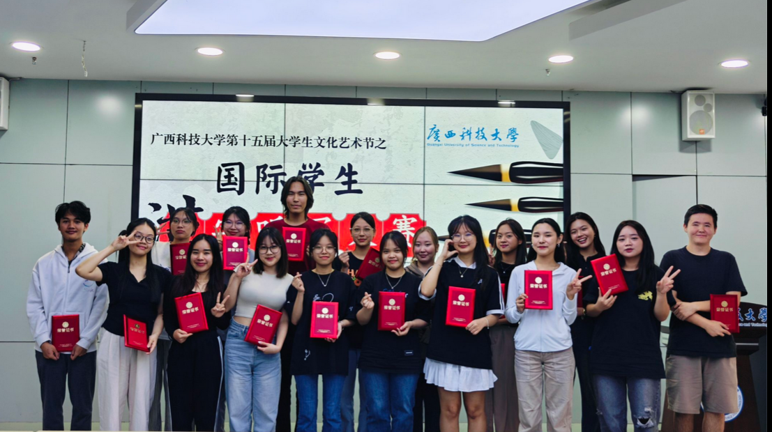 5月27日下午,广西科技大学来华留学生汉字听写大赛在科教楼北211室举行,来自越南、泰国、老挝、俄罗斯等国家的17名来华留学生参加了本次比赛。比赛分为初级组、中级组两组,经过三个环节的激烈比拼,最终评选出各组别一等奖1名、二等奖2名、三等奖3名及优秀奖若干名。本次比赛由国际教育学院承办,为我校第十五届大学生文化艺术节项目之一;旨在以汉字为桥,提高来华留学生的汉字听写能力,促进其对中华文化的理解与认同。