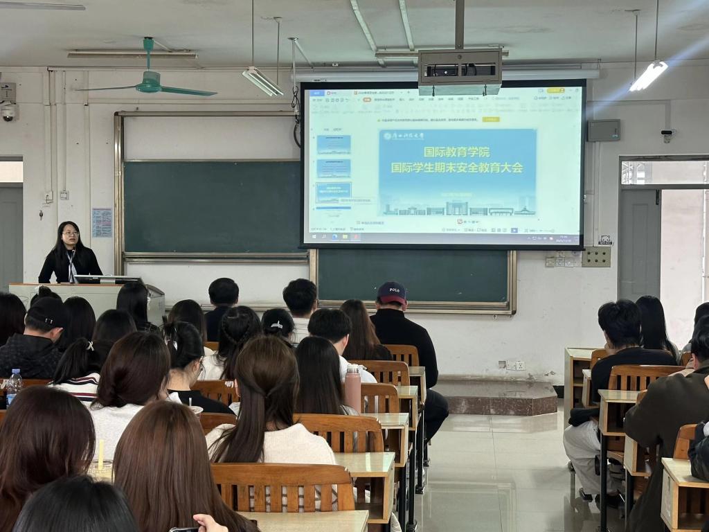接着,会议进入期末安全教育部分。国际学生专职辅导员胡建芳紧扣安全环节,对寝室用火用电、日常交通安全、人身财产安全、请销假制度等方面提出严格要求。针对年末高发风险点,从防溺水安全、交通出行、网络诈骗防范、居留签证、文明上网等方面进行了重点强调,要求国际学生务必严格遵守中国法律法规,假期期间保持与学院的联络畅通。