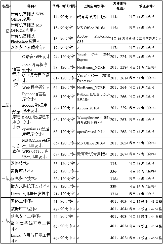 2.从2022年9月考试起,新增二级opengauss数据库程序设计(科目代码68),考试环境见其考试大纲。
