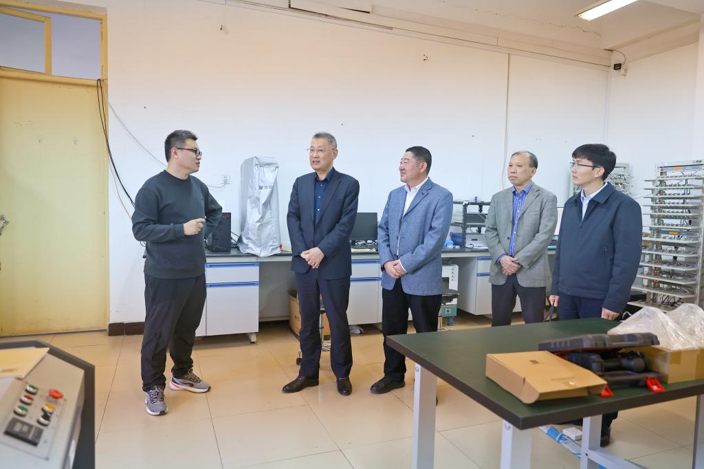 刘宝臣(中)陪同杨欣斌(左2)一行参观电子工程学院重点实验平台
