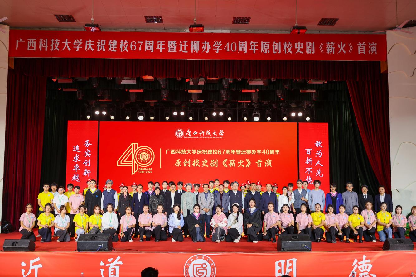 演出在全场经久不息的掌声和齐唱校歌中落下帷幕。观演师生表示,这部剧不仅是一次成功的艺术呈现,更是一堂生动深刻的爱校荣校校史教育课,让人深刻体会到“敢为人先、百折不挠,务实创新、追求卓越”的广西科大精神内涵。据悉,该剧后续将在校内进行常态化展演,并计划开展新生入学教育专场,成为传承学校精神文化、强化思政育人成效的重要载体。通过艺术的形式让校史“活”起来,让思政教育“动”起来,《薪火》必将为校园文化建设注入新的精神动力,激励广大师生在建设高水平应用型大学的新征程上接续奋斗。