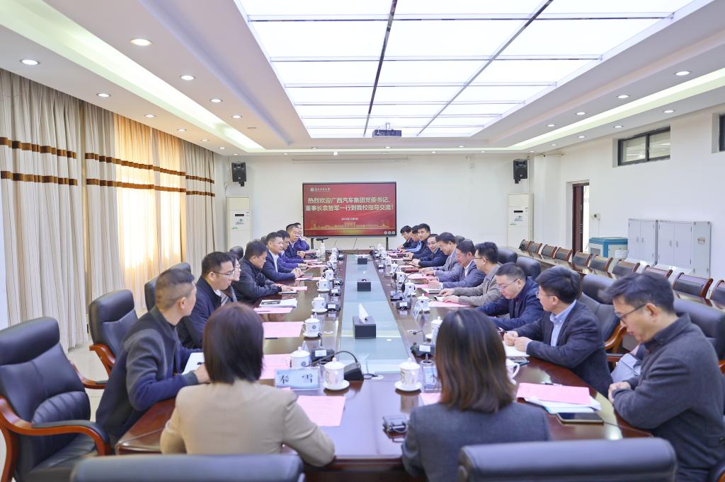 袁智军感谢广西科技大学多年来对广西汽车集团的智力支持。在回顾校企双方近年来合作丰硕成果的基础上,他表示,“十五五”期间双方合作空间广泛,广西汽车集团未来的发展方向与学校优势学科专业高度契合,希望扩大校企合作范围、加强合作力度,持续深入交流,形成良好会商机制,促进双方事业高质量发展。