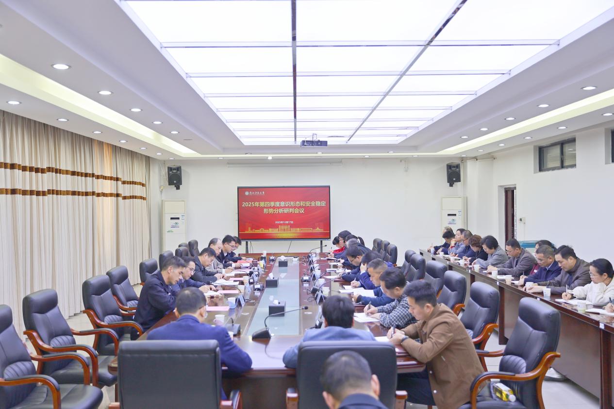 宾月景结合上级文件精神,分析研判了当前形势,强调要持之以恒强化理论武装,将政治安全和意识形态安全置于首位,筑牢消防安全与灾害防范屏障,守住卫生防疫和食品安全防线,强化校园及周边治安综合治理,保障教育考试平稳有序,持续加强涉外活动风险管控,提升舆情防范导控能力,密切关注师生身心健康。他要求各单位要提高政治站位,强化底线思维,细化任务清单,抓好协同联动,确保工作部署落地见效,为学校高质量发展提供坚强政治保证。