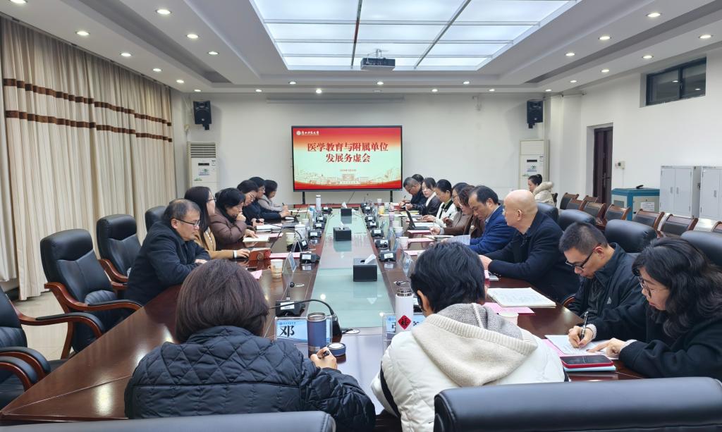 医学部、第一附属医院(第一临床医学院)、第二附属医院(第二临床医学院)、附属卫生学校相关负责同志及工作人员参加会议。