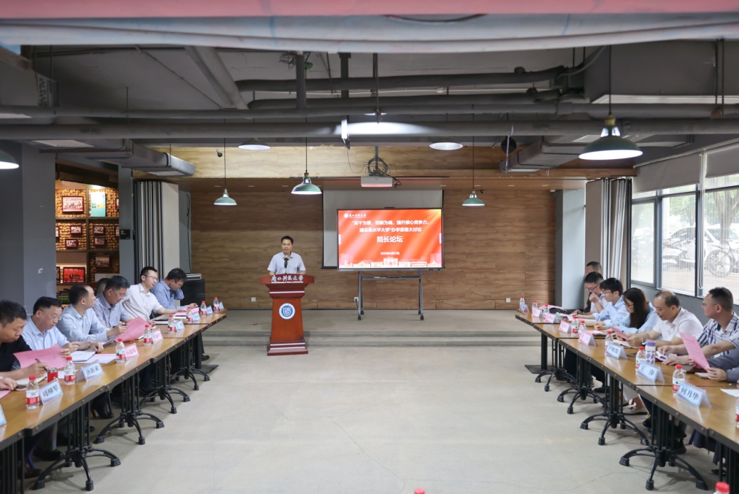 4月27日上午,学校“实干为要,创新为魂,提升核心竞争力,建设高水平大学”办学思想大讨论之院长论坛在文昌校区五教负一层安升咖啡厅举行。学校党委副书记、校长刘宝臣,党委常委、副校长邓朗妮、李健出席论坛。各二级学院(部)院长(主任)和学科带头人代表参加论坛。