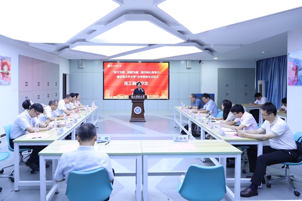 7月4日上午,学校“实干为要,创新为魂,提升核心竞争力,建设高水平大学”办学思想大讨论之医工融合沙龙在文昌校区科教中心大楼北211室举行。学校党委常委、副校长张海英,李健出席沙龙,医学部、附属医院及相关学院负责人参加沙龙。