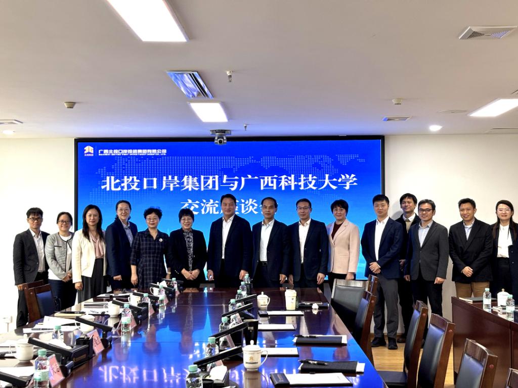 10月23日,我校经济与管理学院、外国语学院回访广西北投口岸投资集团有限公司(下简称“集团”)。双方在集团会议室举行产学研合作交流座谈会,落实双方于9月8日签订的合作框架协议。经济与管理学院党委书记厐晓红,外国语学院党委副书记、院长周柳琴,集团党委书记、董事长吴洪伟,党委副书记、职工董事、工会主席李活出席会议。