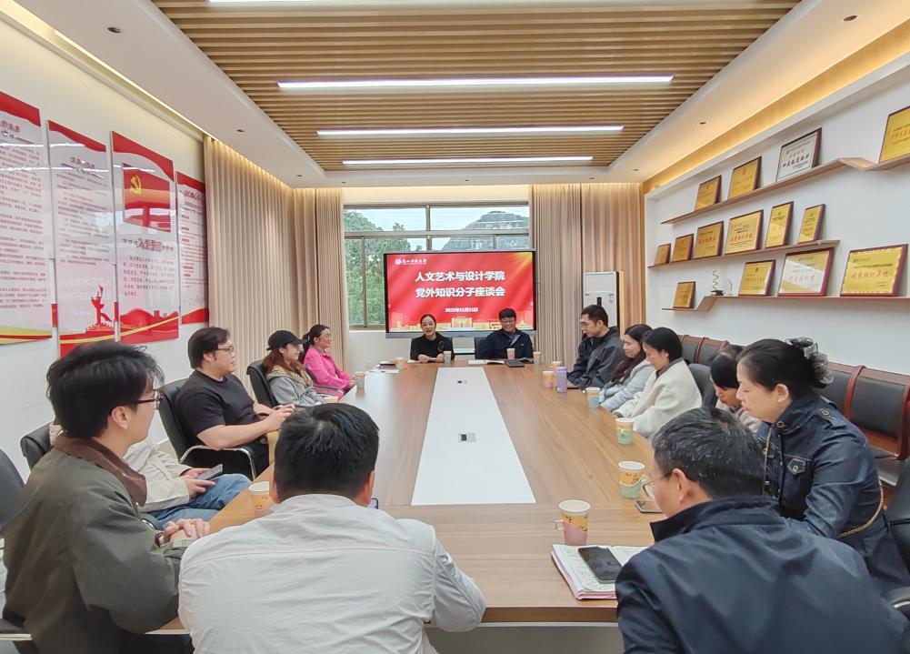 11月11日下午,艺术学院党外知识分子座谈会在文昌校区三教北302室召开。会议旨在听取党外教师意见建议,汇聚发展合力。学院党委书记刘莉莉,党委副书记、院长何月华出席会议。会议由党委委员、副院长刘红晓主持。