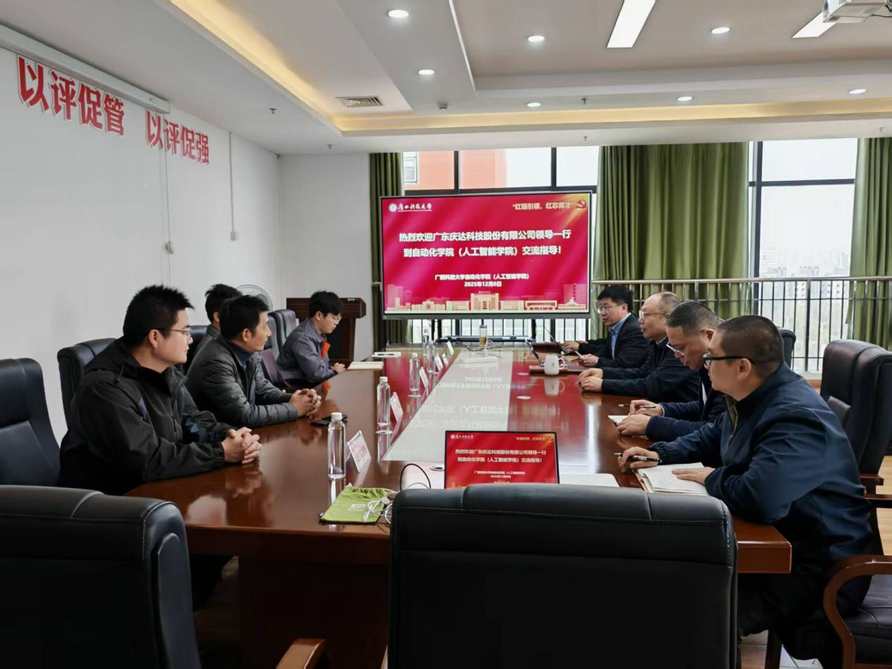 12月8日上午,广东庆达科技股份有限公司、广西庆达精密机械有限公司等一行5人到自动化学院考察交流,商讨校企合作事项。自动化学院党委书记彭勇、院长刘胜永及学院教师代表参加座谈。