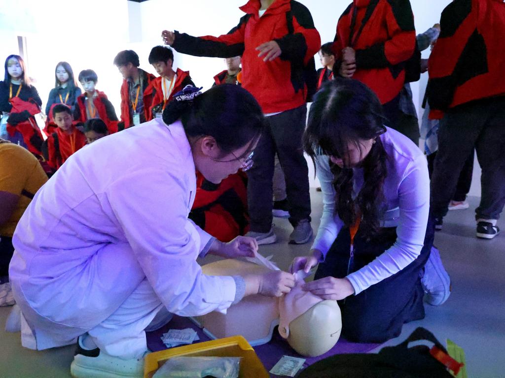 印尼师生现场观摩并学习了急救技能、观看了中医针灸和推拿演示。师生们还亲手制作了具有中医药特色的香囊,在互动中深切感受到中医药文化的独特魅力。
