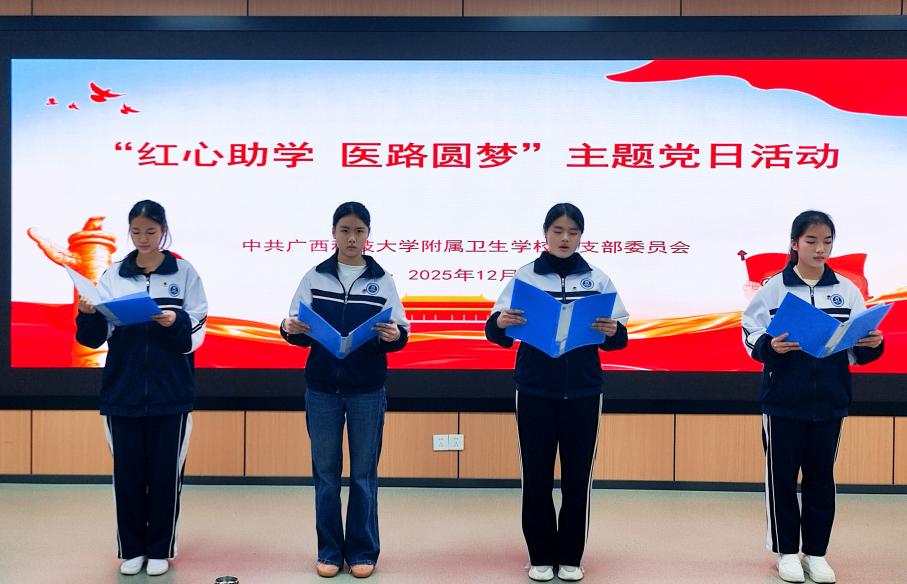 12月30日下午,附属卫校党总支在生命科学馆报告厅举办“红心助学 医路圆梦”主题党日活动。附属卫校主要负责人、全体党员、发展对象、入党积极分子以及“创新班”“圆梦班”优秀学生代表参加了此次活动。护理24-9班张玮玥分享了学习生活中的感悟与收获、表达了对党组织和学校关怀的深深感激以及立志成才、回报社会的决心。附属卫校主要负责人为同学们送上精心准备的毛毯,将党组织的温暖传递到学子手中。