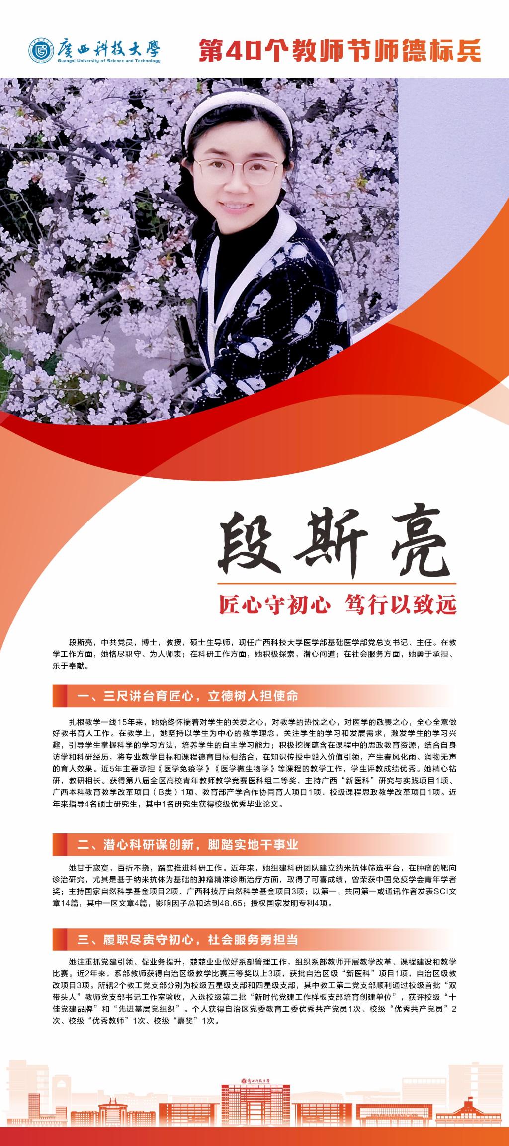 接下来,我们将推出系列报道,为大家介绍我校这些优秀教师。今天就让我们一起走近学校“师德标兵”段斯亮吧。