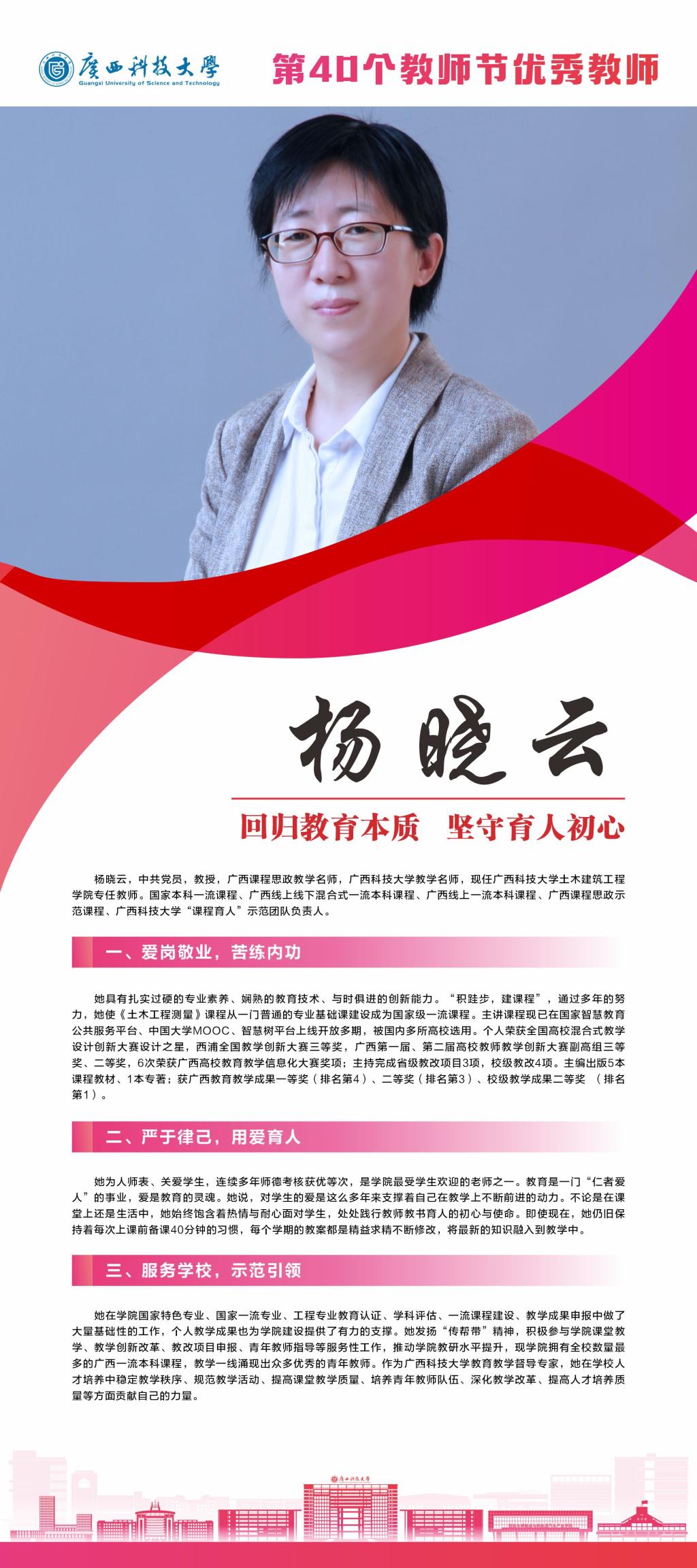 接下来,我们将推出系列报道,为大家介绍我校这些优秀教师。今天就让我们一起走近学校“优秀教师”杨晓云吧。
