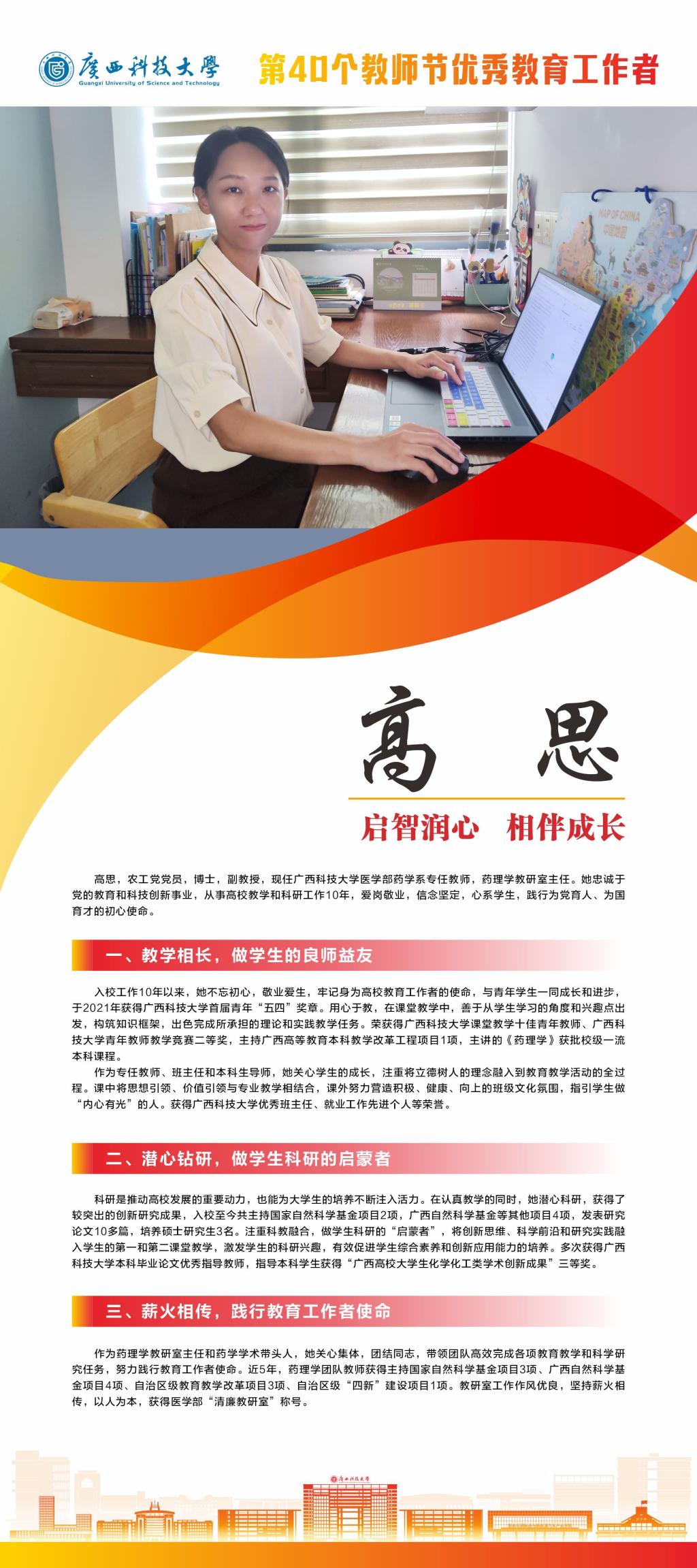 接下来,我们将推出系列报道,为大家介绍我校这些优秀教师。今天就让我们一起走近学校“优秀教育工作者”高思吧。