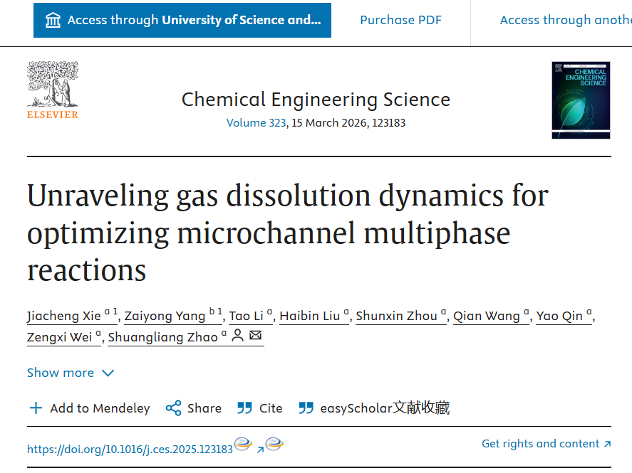 近日,我校生物与化工学院先进材料微化工团队在微通道气体溶解动力学研究方面取得重要进展。该工作系统揭示了微通道内气体溶解动力学的调控机制,为高效微反应器设计与优化提供了重要理论依据。研究成果以unraveling gas dissolution dynamics for optimizing microchannel multiphase reactions为题,发表在国际化工领域权威期刊chemical engineering science上。论文共同第一作者为该团队杨再雍博士,通讯作者为广西大学赵双良教授,我校系该论文共同完成单位。