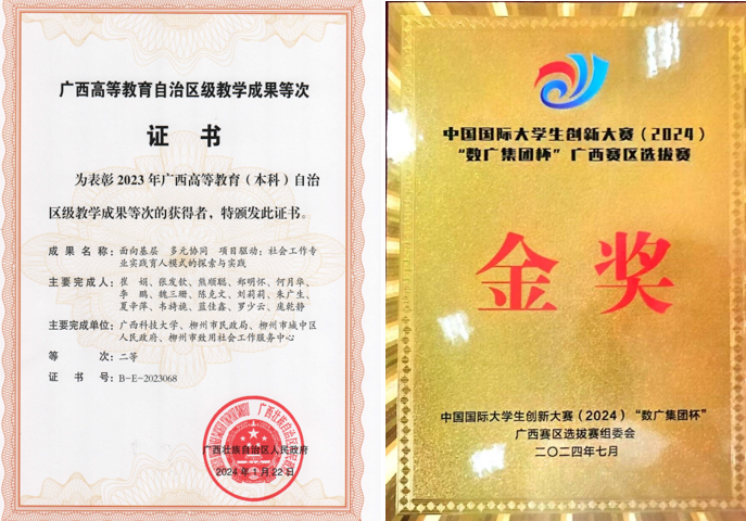 获自治区级教学成果奖和中国国际大学生创新大赛区级金奖
