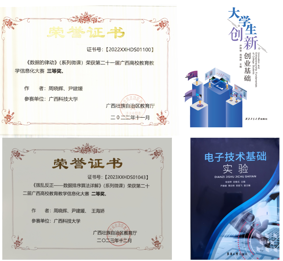 广西高等教育教学信息化大赛获奖证书和出版教材