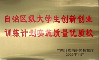 获评自治区级大学生创新创业训练计划实施质量优质校