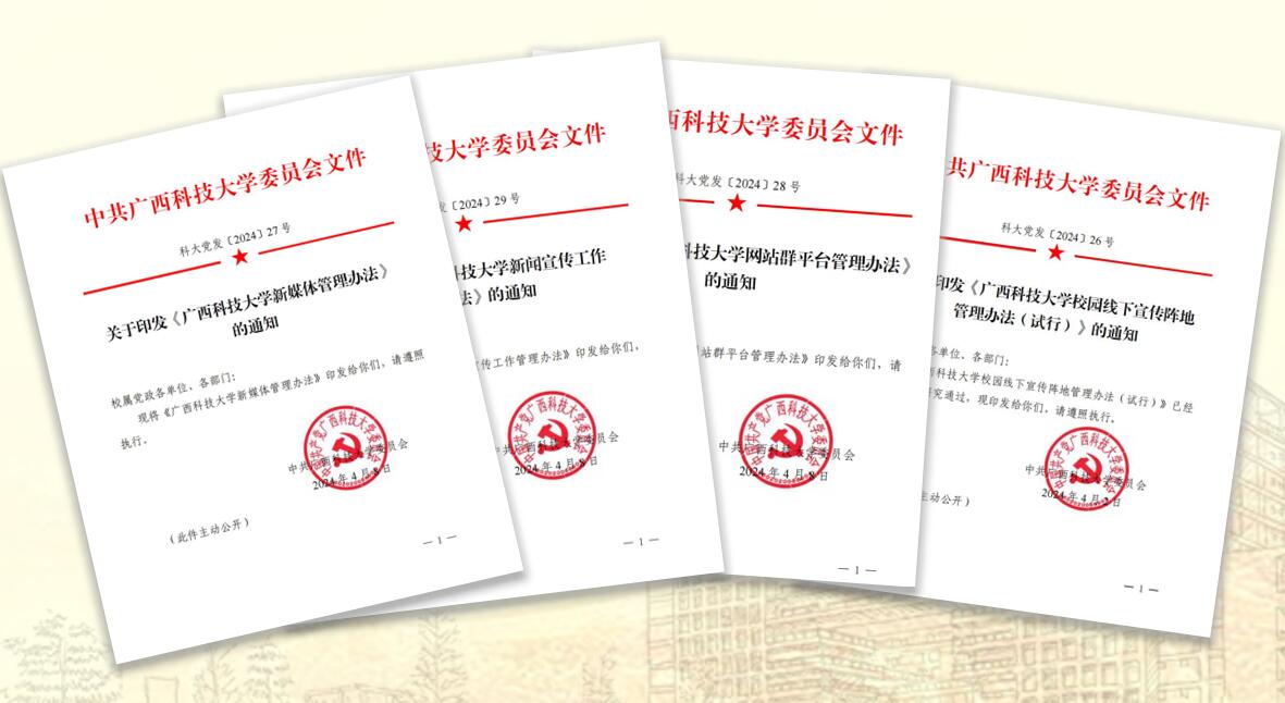 打造文化平台载体,大学文化建设实现高质量发展。创作完成校歌,凝练形成广西科大精神,完成主校区更名工作,发布学校视觉形象识别系统,举行大学文化建设成果发布会,持续打造23个校级文化品牌,提升学校文化软实力。建成并启用规划馆、“独秀书房”,建设宗元南广场文化景观,每年印发文创台历,打造校园文化建设新载体。