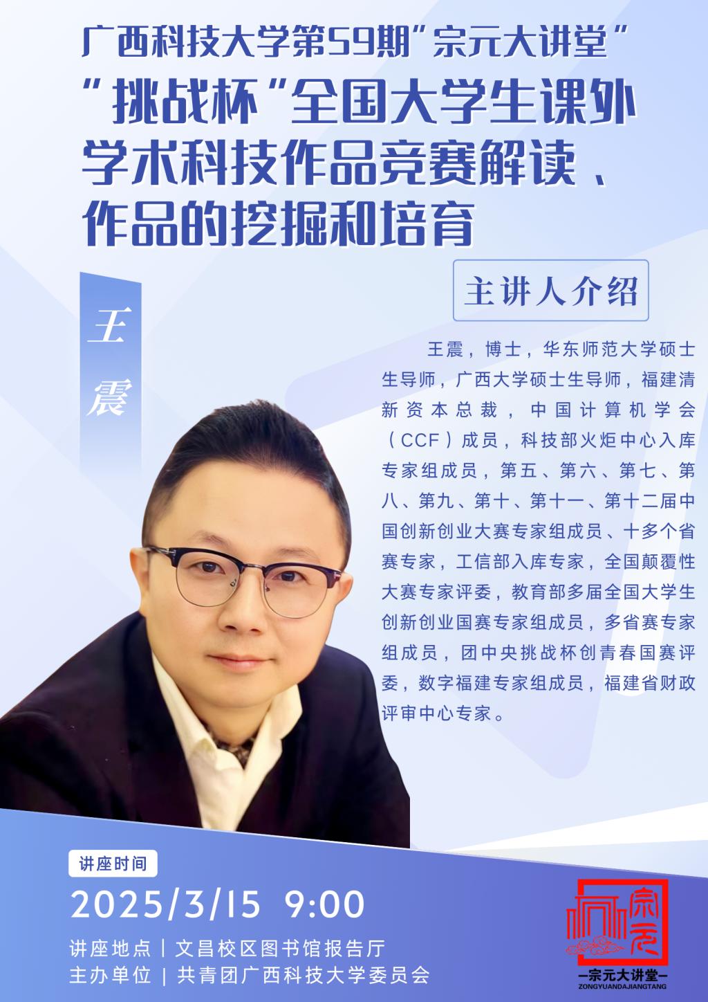 王震,博士,华东师范大学硕士生导师,广西大学硕士生导师,福建清新资本总裁,中国计算机学会(ccf)成员,科技部火炬中心入库专家组成员,第五、第六、第七、第八、第九、第十、第十一、第十二届中国创新创业大赛专家组成员、十多个省赛专家,工信部入库专家,全国颠覆性大赛专家评委,教育部多届全国大学生创新创业国赛专家组成员,多省赛专家组成员,团中央挑战杯创青春国赛评委,数字福建专家组成员,福建省财政评审中心专家。