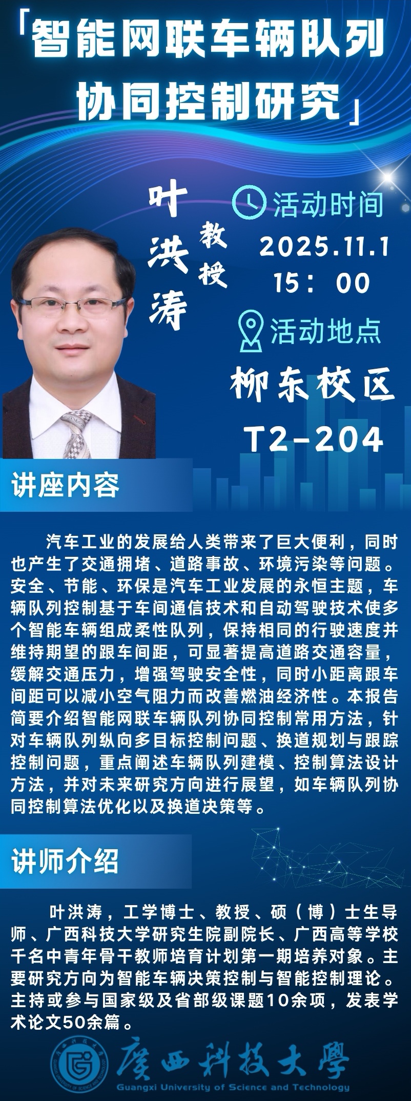 讲座主题:智能网联车辆队列协同控制研究